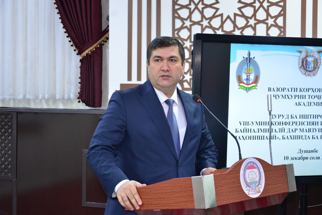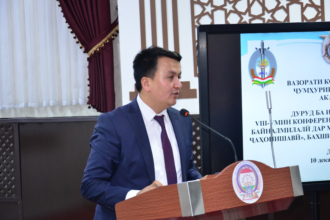 10 декабри соли 2025 дар Академияи Вазорати корҳои дохилии Ҷумҳурии Тоҷикистон VIII-умин конференсияи илмии байналмилалӣ дар мавзуи “Ҳуқуқи инсон ва ҷаҳонишавӣ” бахшида ба Рӯзи ҳуқуқи инсон, баргузор гардид, ки дар кори он директори Марказ иштирок ва дар мавзуи “Дастовардҳои конститутсионии соҳаи ҳуқуқи инсон дар даврони соҳибихтиёрӣ” бо маъруза баромад намуданд.